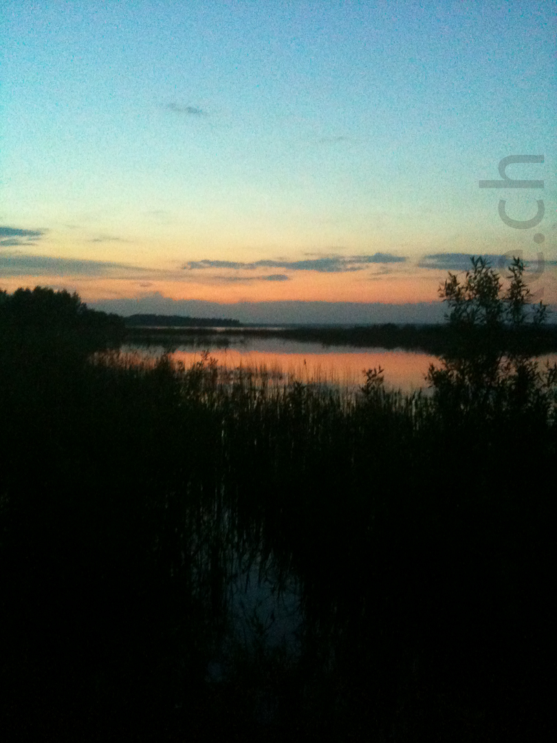 Auf dem Bild leider nie so toll wie in Wirklichkeit: Die untergehende Sonne liess die Wasserflächen gülden leuchten und glitzern, der absolute Wahnsinn!