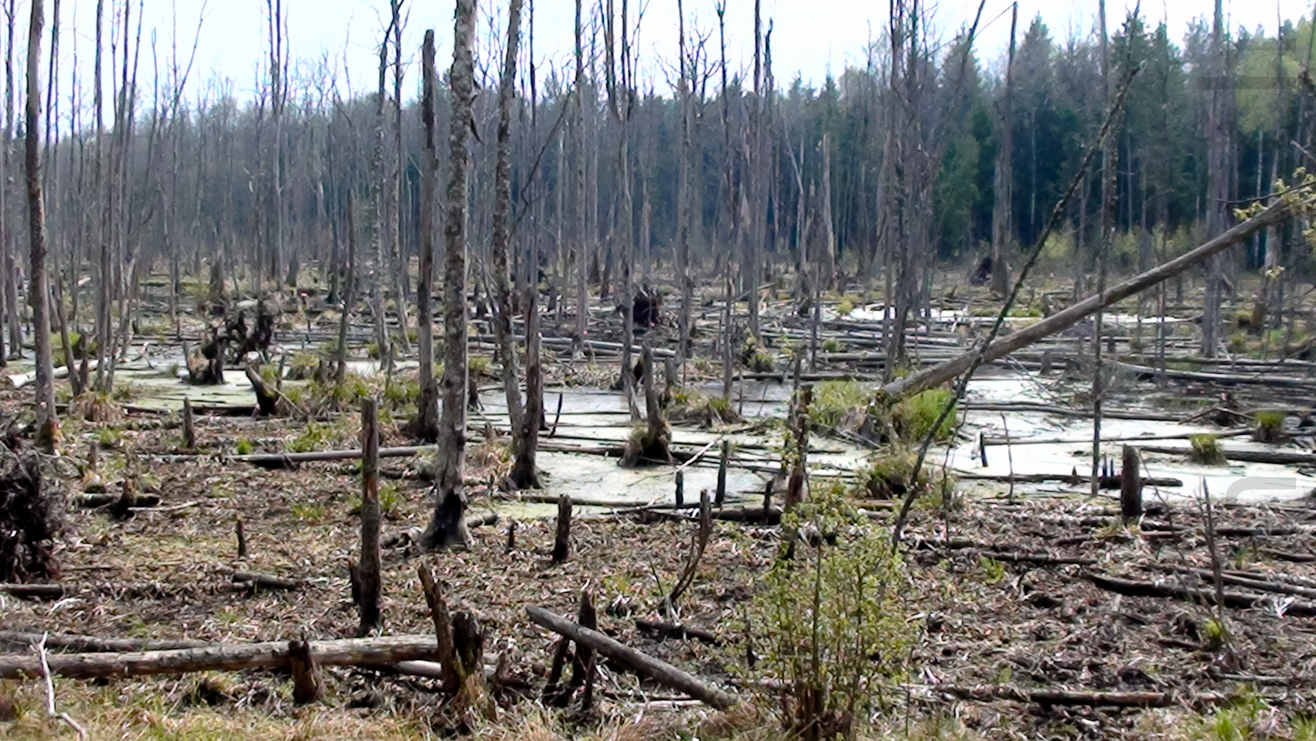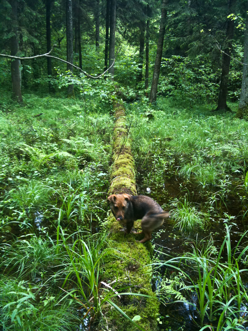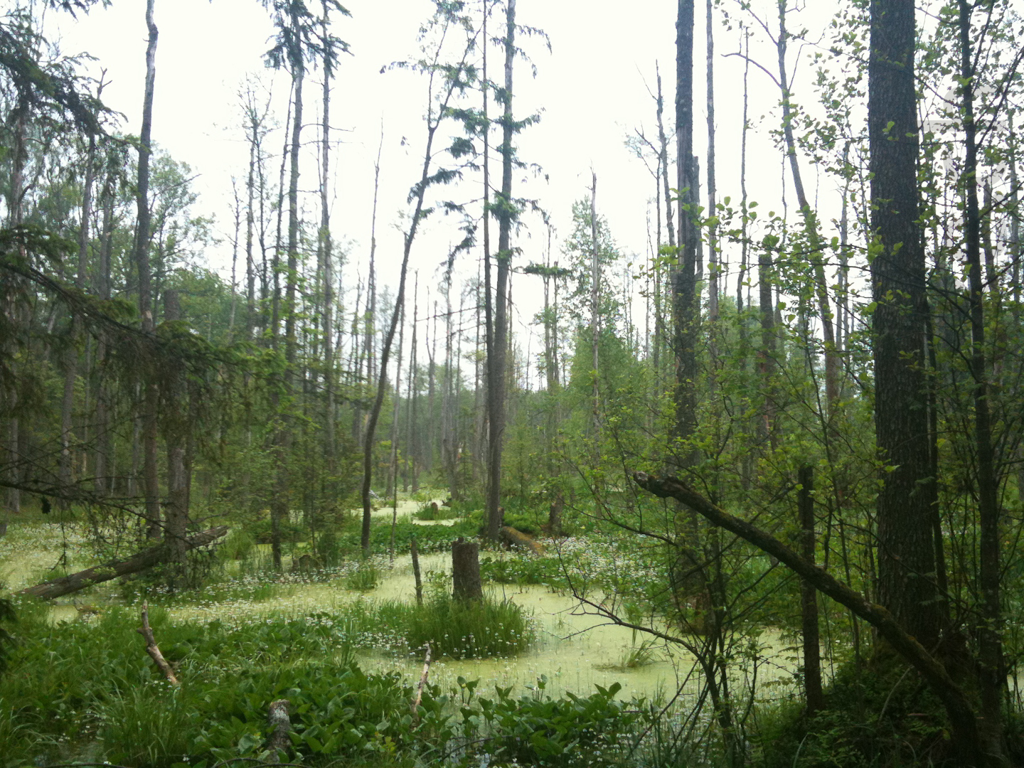 Wer sich hier verirrt, wird es bereuen. Unmöglich, eine bestimmte Richtung einzuhalten, denn überall liegen umgestürzte Bäume, dazwischen Wassertümpel, sodass man ständig ausweichen muss.