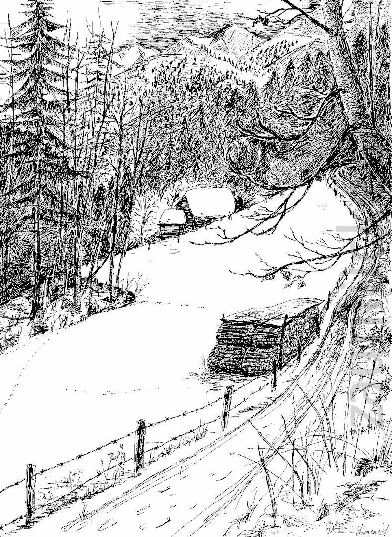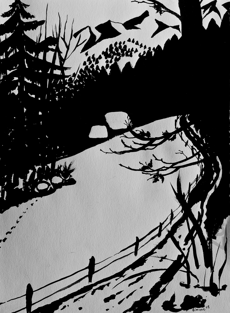 Dieselbe Skizze, Ausführung diesmal als Tuschzeichnung