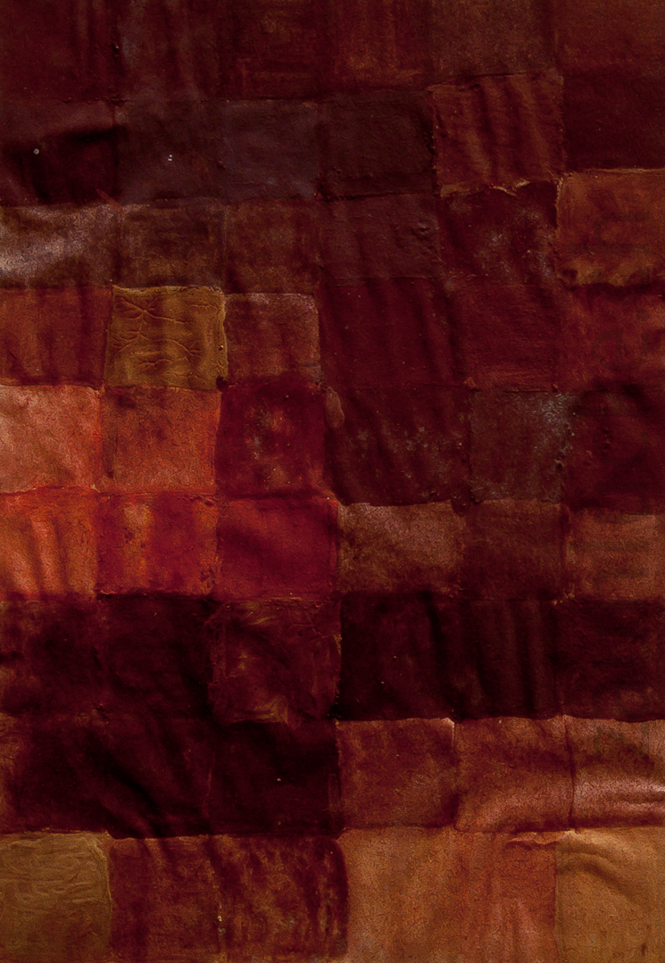 Verschiedene rote Farbpigmente angemischt mit verschiedenen Bindemitteln wie Leime, Eigelb, Blut evtl. auch Oel