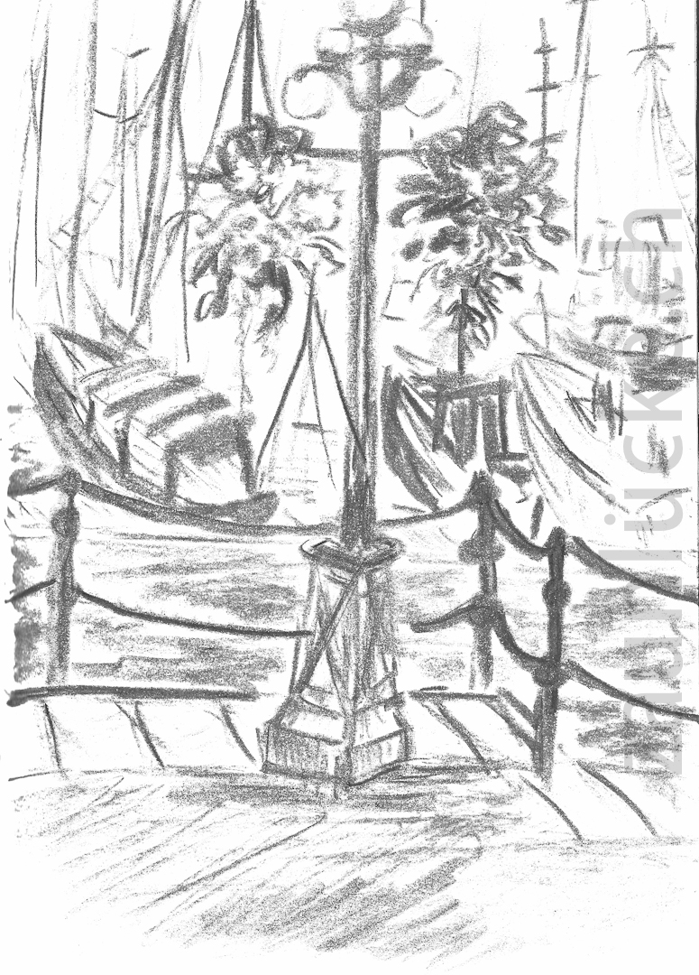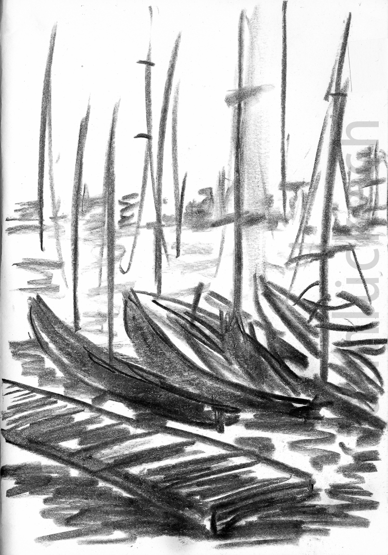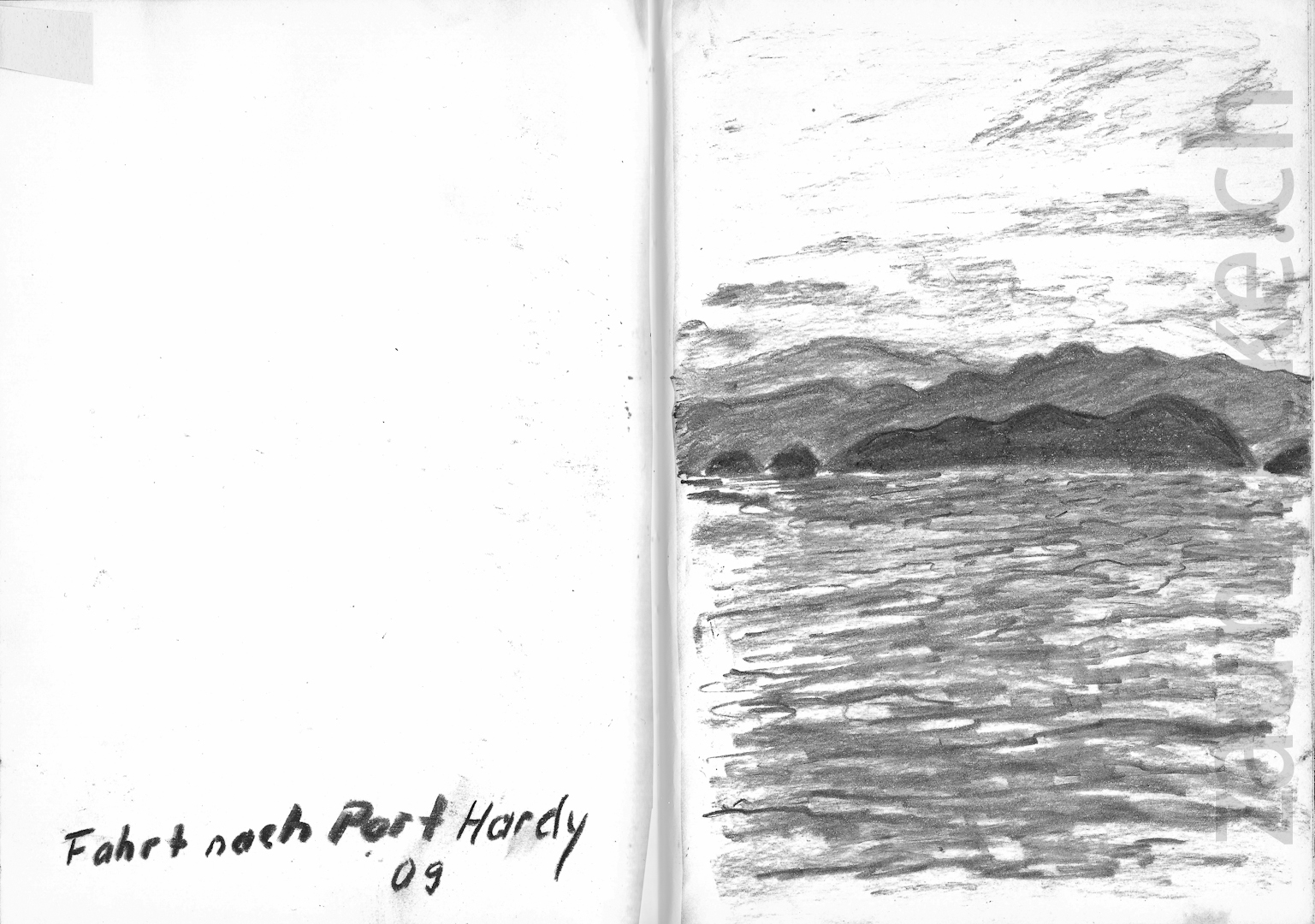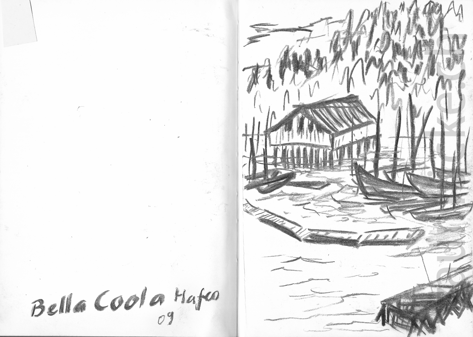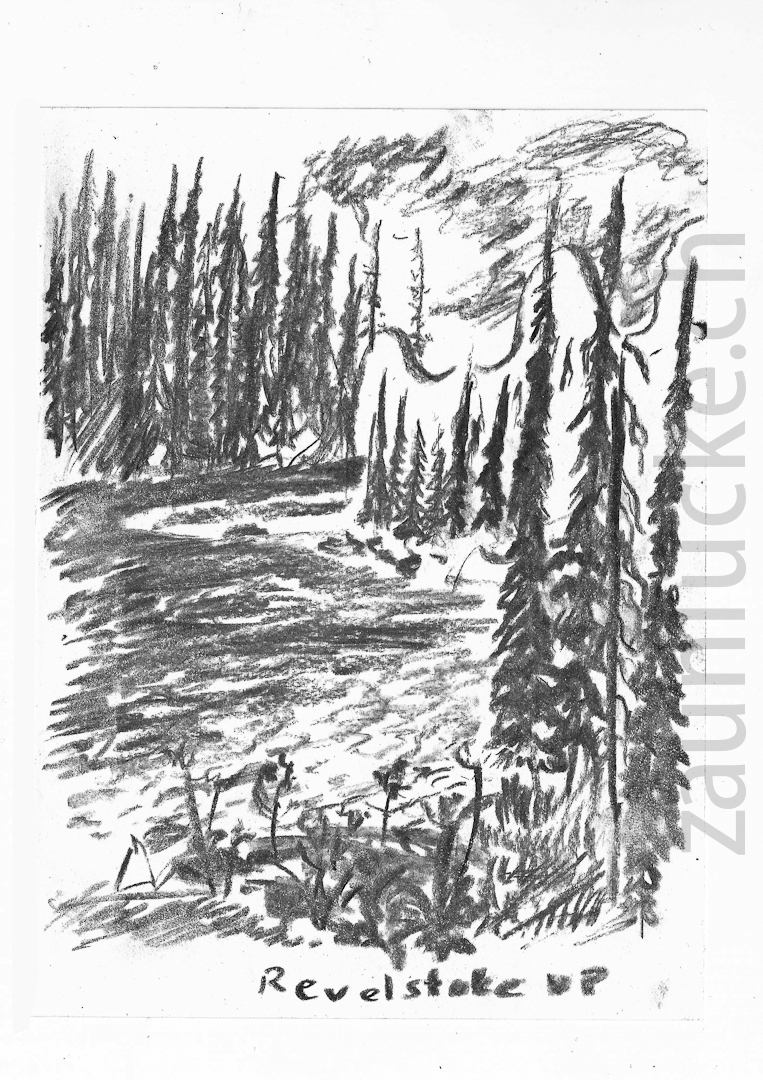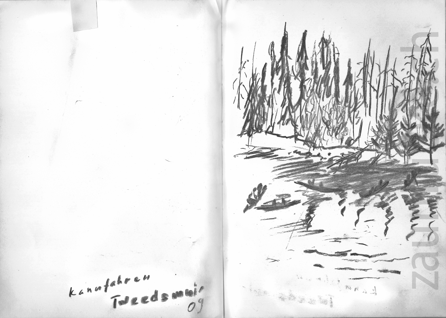 Mit den Kanus auf dem See im Tweedsmuir NP, Kohleskizzen